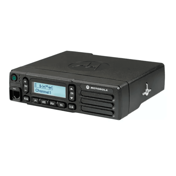 Radio Motorola DEM 500 VHF de 128 canales, frecuencia 136-174 MHz y potencia de 45 W. Excelente para comunicación estable en zonas amplias.